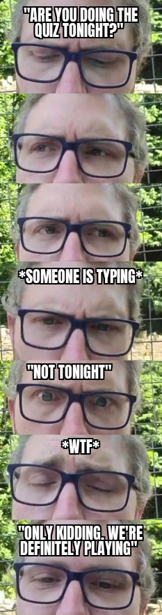Think you know your memes. Live pub quiz every thursday night and saturday night streamed liv. Car brands withme stayhome duration.