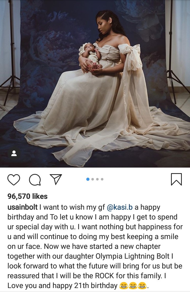 Eight time olympic gold medalist usain bolt has shared the first photographs of his new baby daughter who was born in may to social media late tuesday night. I want to wish my gf kasi b a happy birthday. Kuala lumpur july 8 world behold olympia lightning bolt.
